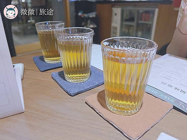 一入座有茶水的部分!我們因為沒事前訂位,比較可惜三人擠兩人的位置,又在最靠近樓梯的下方,因為側邊樓梯是簍空的,有人走上走下,我們坐在下面觀感有一點不好