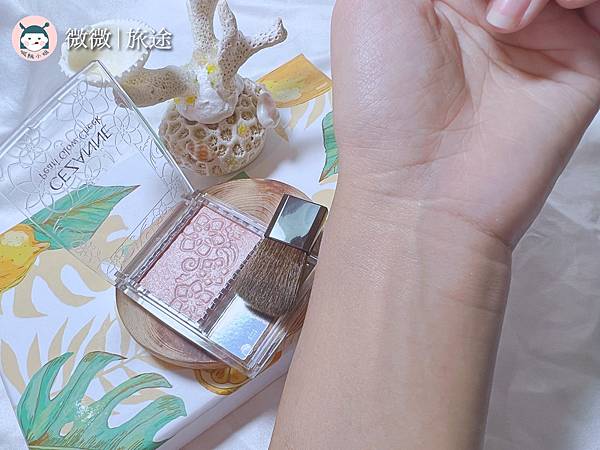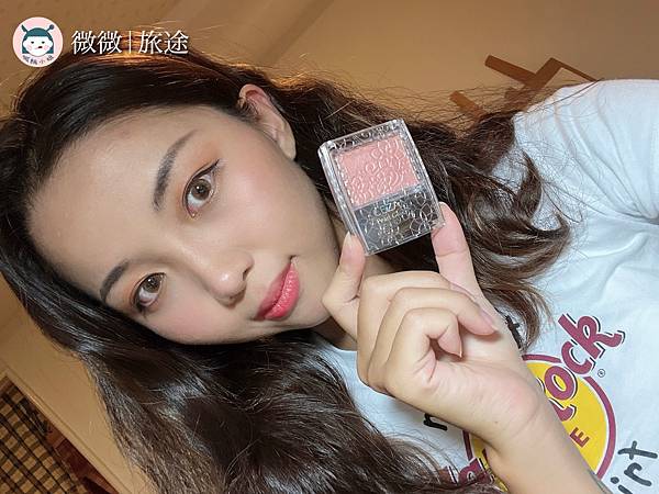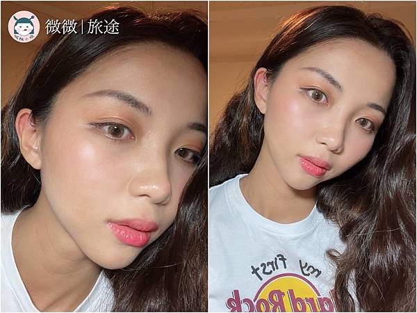 自己其實本來很害怕珊瑚色系的腮紅,因為本身是健康黑膚色,之前買過一款但沒有帶亮粉的,遲遲沒拿出來使用,都很怕自己看起來髒髒的~但這款加了珠光,反而我的膚色看起來更健康帶光澤!
