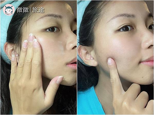輕輕戳一下,很QQ澎澎的,本來很擔心這種保養品會很有負擔,但這個吸收後不會黏膩哦!個人很喜歡肌膚彈潤~