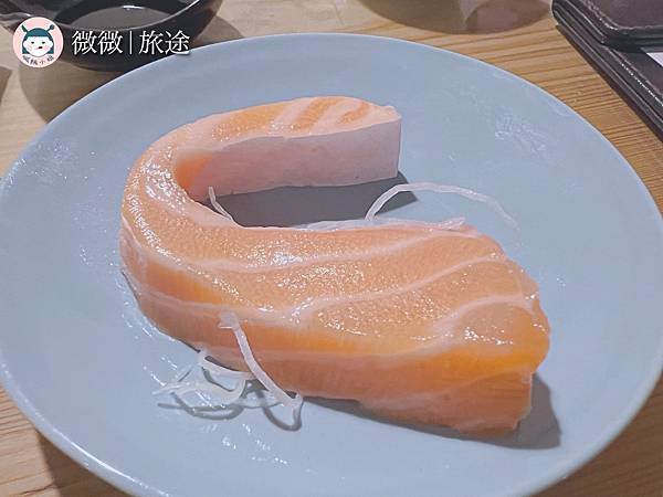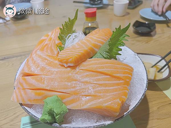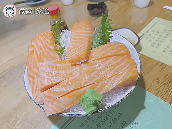 <鮭魚生魚片>馬上就上來超級豪邁的生魚片,我們點綜合的但全部都是鮭魚的哦~看看這超級厚的誠意滿滿,吃起來很鮮甜,身為鮭魚控的我實在超級滿足呀🥰