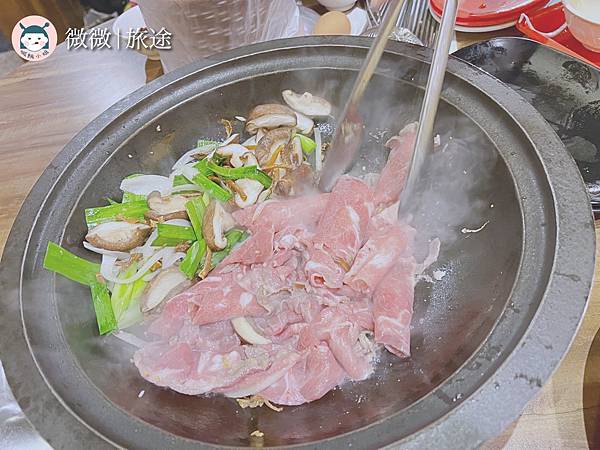 可以看到店家把肉品和一些蔬菜先下鍋爆香,味道香噴噴的瞬間衝上來,忍不住好想趕快開動!