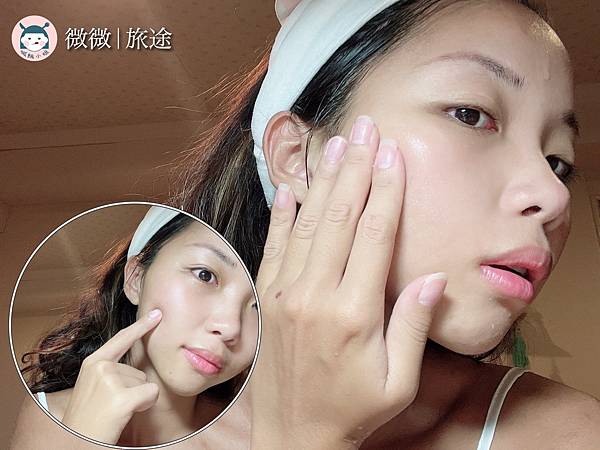 洗完臉後,日常可以前導使用三步驟:均勻地塗抹全臉,再輕拍導入,最後想加強的重點處可以濕敷五分鐘。裡頭多款保濕因子,都有助於喚膚,臉彈彈QQ的。之後再照日常保養程序,使用化妝水、乳液...等,就完成囉。