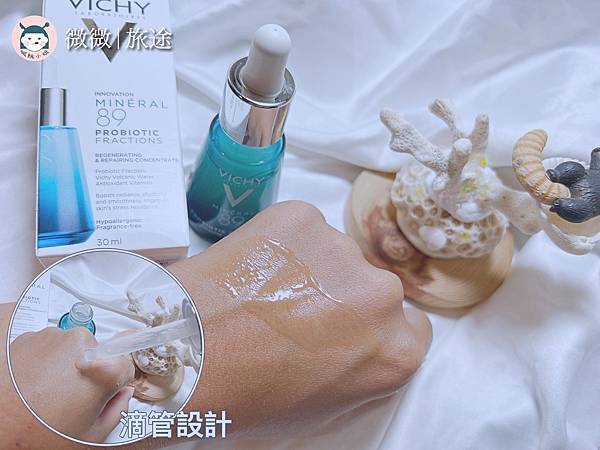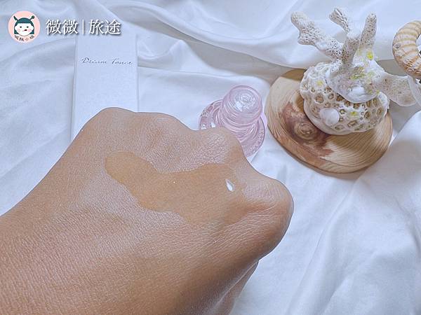 先在手背上試用,滴管設計可以方便控制用量,推開後是有點水膠狀的質地。