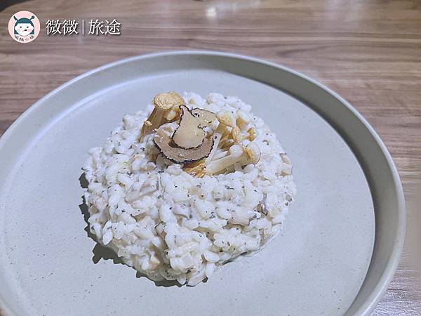 <黑松露奶油野菇義式燉飯>保有米心的義式燉飯,吃起來帶點咬勁,奶油跟松露很香
