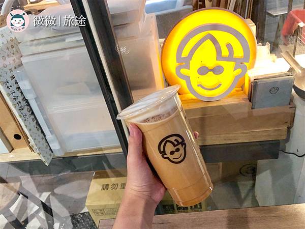 <炒糖鮮奶茶 半糖去冰>飲料外杯有招牌波哥的頭像,蠻可愛的,個人覺得茶味沒有那麼濃,炒糖的部分多一點點焦香味,但感受比較不明顯