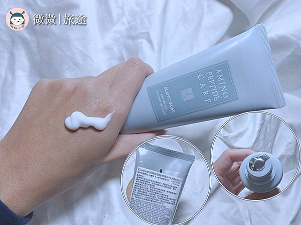 擠出來可以聞到淡淡的雅香,不會有過於刺鼻強烈的味道,產品在前中後調的香氣,都有添加不同的用心設計,稍微搓揉一下,馬上就起泡泡了,還蠻綿密的~