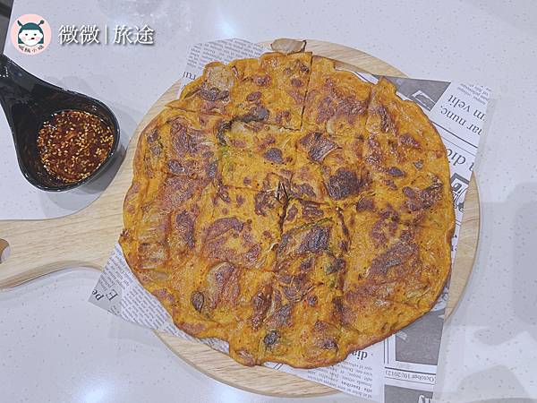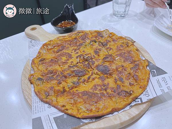 <泡菜煎餅>店內居然有一些常見的韓式料理可以點,泡菜煎餅是薄皮那種,料比較少,吃起來香香的