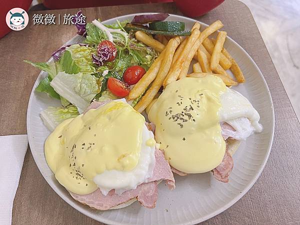 <班迪尼克蛋早餐盤>前陣子突然很喜歡吃班迪尼克蛋,水波蛋配上帶點酸酸的醬汁,最喜歡蛋汁留下來跟麵包巴著沾著吃~