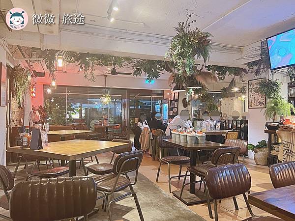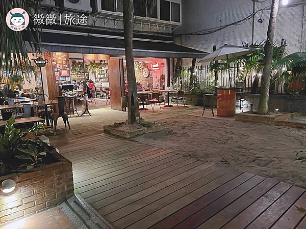 沒想到在台北市還有做前庭沙地的餐廳,給人一種世外桃源的感覺!進店後座位有很多綠色植物裝飾~