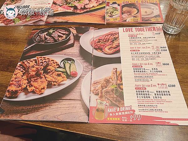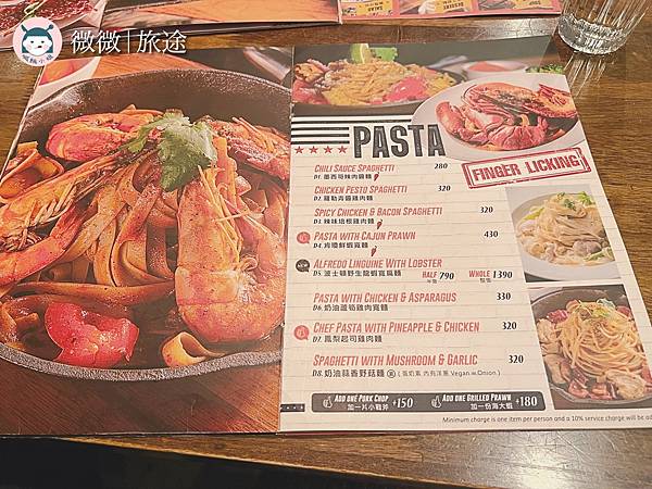 完整的菜單照慣例放在最後囉,大家可以參考,有前菜、排餐類、麵飯、披薩...等!選擇蠻多樣的~