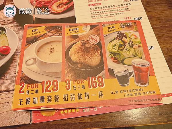 也可以搭配套餐哦(後方菜單有附上,沙拉跟湯和甜點可以選,配上飲料~