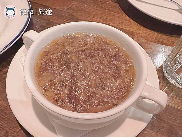 <主廚例湯-洋蔥湯>點完很快就陸續上桌啦!當天的例湯是洋蔥湯,不是勾芡那種!