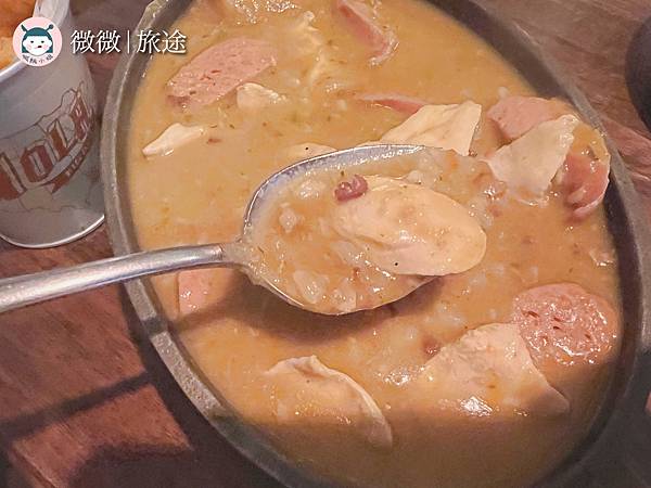 <紐奧良濃湯飯 香腸雞肉>這個超級特別,自己之前好像沒什麼印象有吃過這種濃湯飯Gumbo,是紐奧良當地的傳統家常菜,是用多種蔬菜跟Cajun香料熬成的湯飯,還有加上豆類,吃起來會讓人忍不住想猜一下裡面到底有什麼,很香,豆類的味道蠻明顯的,香料的味道很特別超級配麵包~