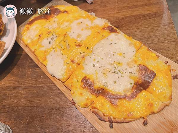 <火烤手作烤餅 四種起司>吃起來烤的邊緣有點像餅乾,中間還有麵皮的香,滿滿的起司,身為起司控絕對不會錯囉~