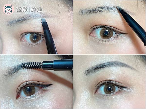 照著圖來畫眉毛囉~先用尖端勾出眉毛的形狀,然後再轉向塗滿整個中間,最後再用刷子刷開,不會結塊~Do Re Me So🎶就完成囉!覺得設計的很好上手,一支就可以搞定,很適合旅行攜帶~但眉形的掌握,各位還是要自己修煉囉,真的多畫練習就可以很準確的畫出適合自己的樣子囉~希望大家的水水der