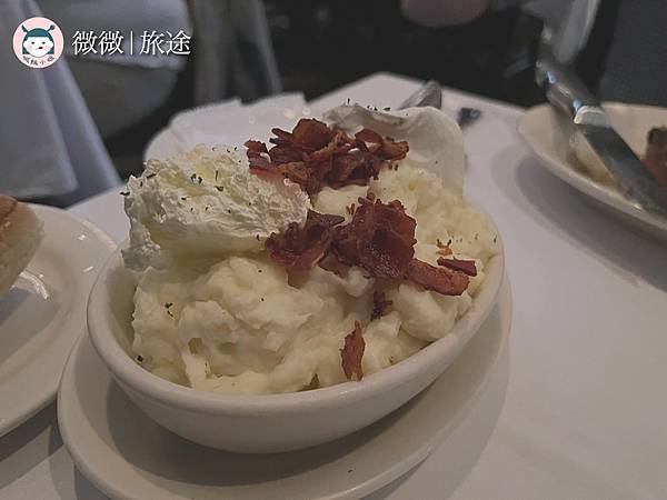 <酸奶薯泥>配菜的部份我們點了兩樣,薯泥很綿密好吃,配上脆脆的烤培根,酸奶剛好解膩