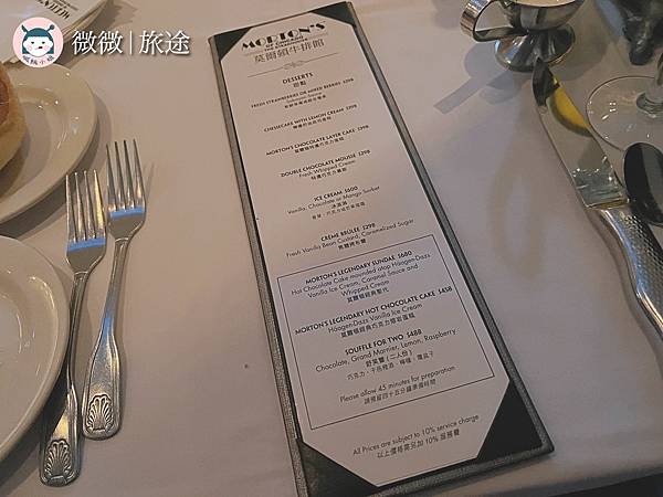 可以選擇氣泡水或是一般水,高級餐廳水都是要收費的哦!參考菜單放在後面,主要都是排餐類,我們本來不小心要點太多,服務生很貼心的提醒我們份量可能會太多,結果真的~我們少點一些但還是打包!