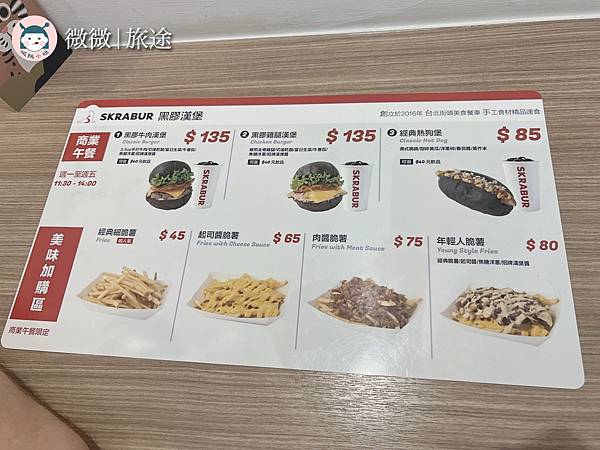 這家美式漢堡店從他開幕就幾乎每天經過,這次終於進店用餐啦~超級特別是黑色的漢堡麵包皮,肉很多汁,最喜歡他的脆薯有酸奶醬,超搭~