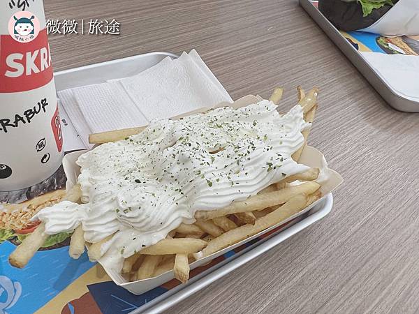 <酸奶油脆薯>這家的薯條是細長型的,自己很喜歡這種,因為吃起來特別酥脆,配上酸奶醬剛好解膩一些~