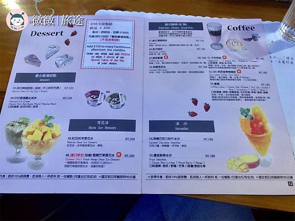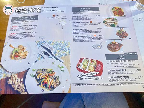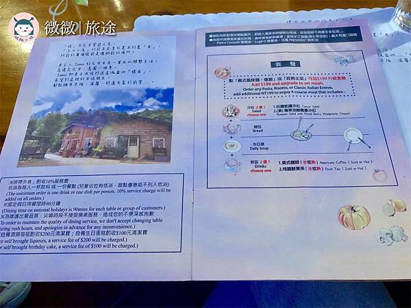 完整的菜單幫大家檢附菜後方,偷偷跟大家說,這家餐廳的口味可是有一定水準的,因為餐廳的廚師以前可是工作於知名義大利餐廳,沒想到在隱身在這樣的山區,還能吃到義大利餐,實在太幸福囉!
