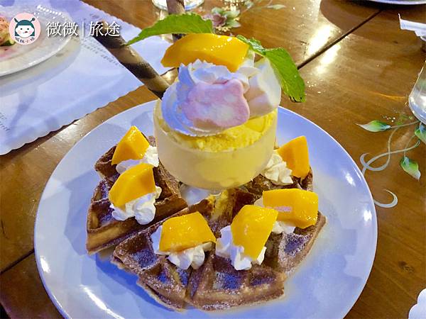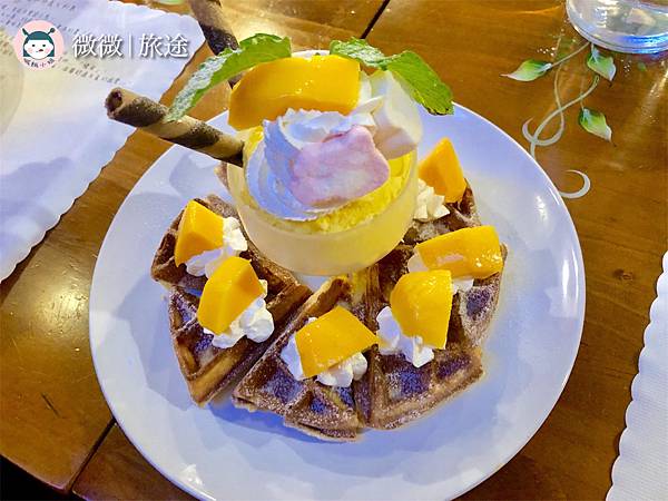 <夏日限定-新鮮芒果冰淇淋鬆餅>滿滿的冰淇淋配上鬆餅,吃起來很消暑過癮