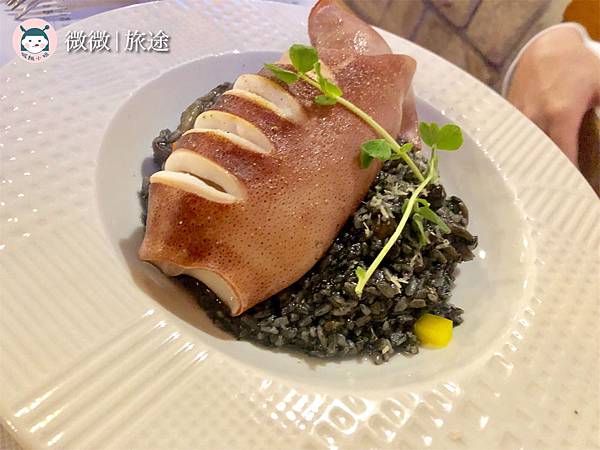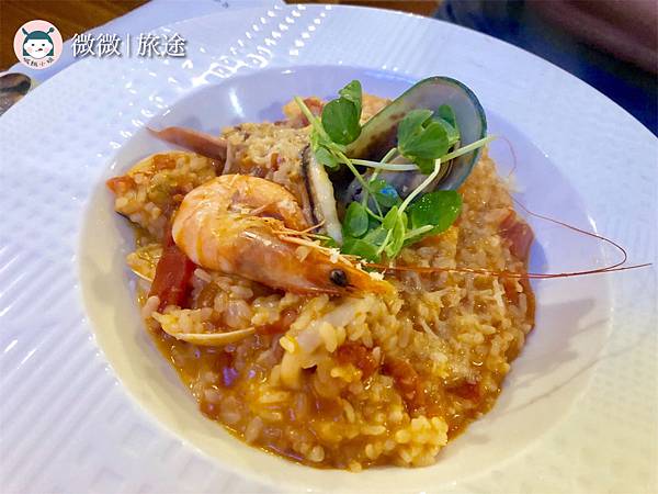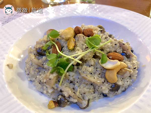 <松露野菇燉飯>覺得松露的味道很香,奶油和起司巴覆著燉飯,上頭的堅果增添了脆口解膩的口感,個人很推薦點這道![]()